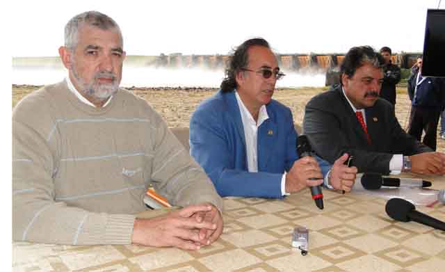 Foto: El director paraguayo de la EBY Miguel Fulgencio Rodríguez (Izq.), Oscar Thomas de Argentina y el ministro de energía argentino Daniel Cameron.
