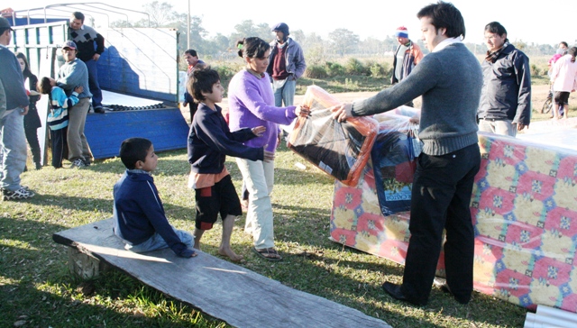 El Área de Coordinación Social de la Entidad Binacional Yacyretá entregó aportes a los pobladores de escasos recursos de la Isla Yasyreta. Se trata de la segunda entrega, consistente en frazadas, colchones y chapas de zinc.