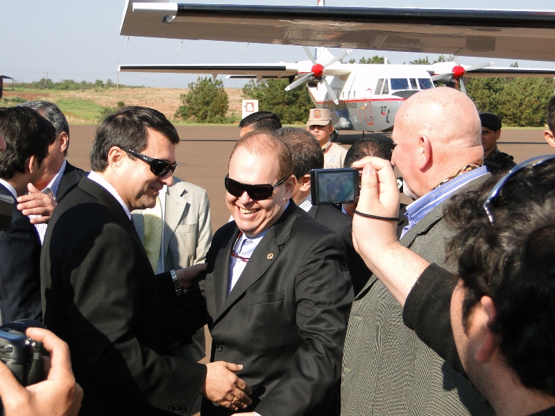Foto: El presidente de la República Federico Franco es recibido por el director de Yacyretá Enrique Cáceres Rojas en el aeropuerto de Encarnación.