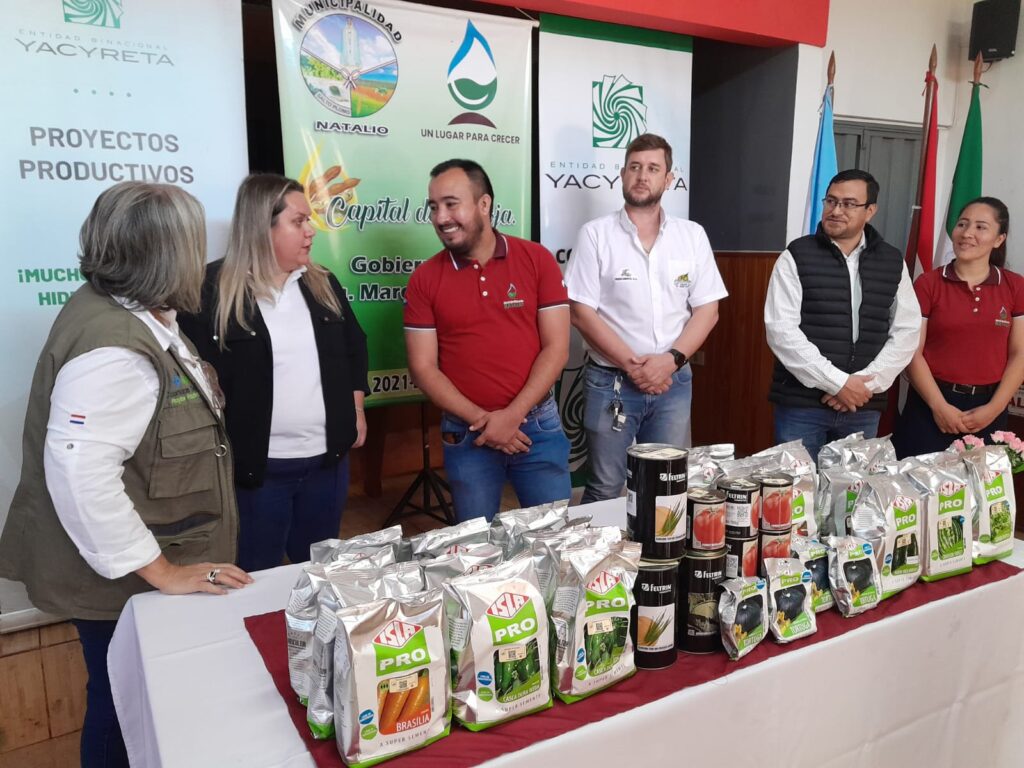 Este emprendimiento está a cargo del sector Proyectos Productivos de la Coordinación Social de la EBY, y beneficia a alrededor de 500 productores de la zona. Se entregaron semillas de sandía, pepino, locote, tomate, cebollita en hoja, repollo, lechuga y otras variedades.