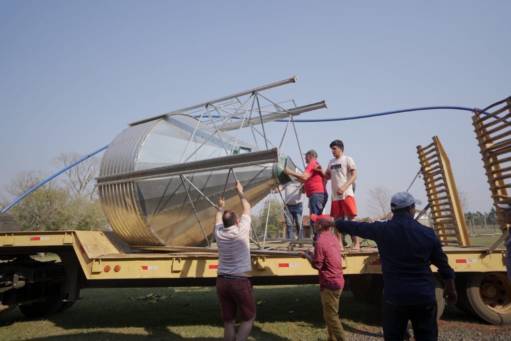 En la presente semana se inician los trabajos de montaje de todos los equipamientos industriales (silo, capacidad de 6.000 de granos, mezcladora, etc.) necesarios para el procesamiento de granos producidos por los integrantes de la organización de distintos asentamientos.