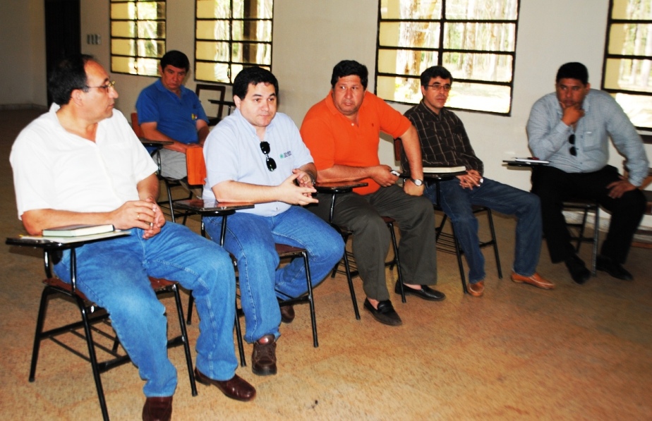Funcionarios del programa “Cultivando Y Porã” de la Entidad Binacional Yacyretá (EBY), directivos y estudiantes de la Escuela Agrícola, dependiente del Ministerio de Agricultura y Ganadería (MAG), analizan probables proyectos a ser desarrollados en el distrito de San Juan Bautista, departamento de Misiones.
