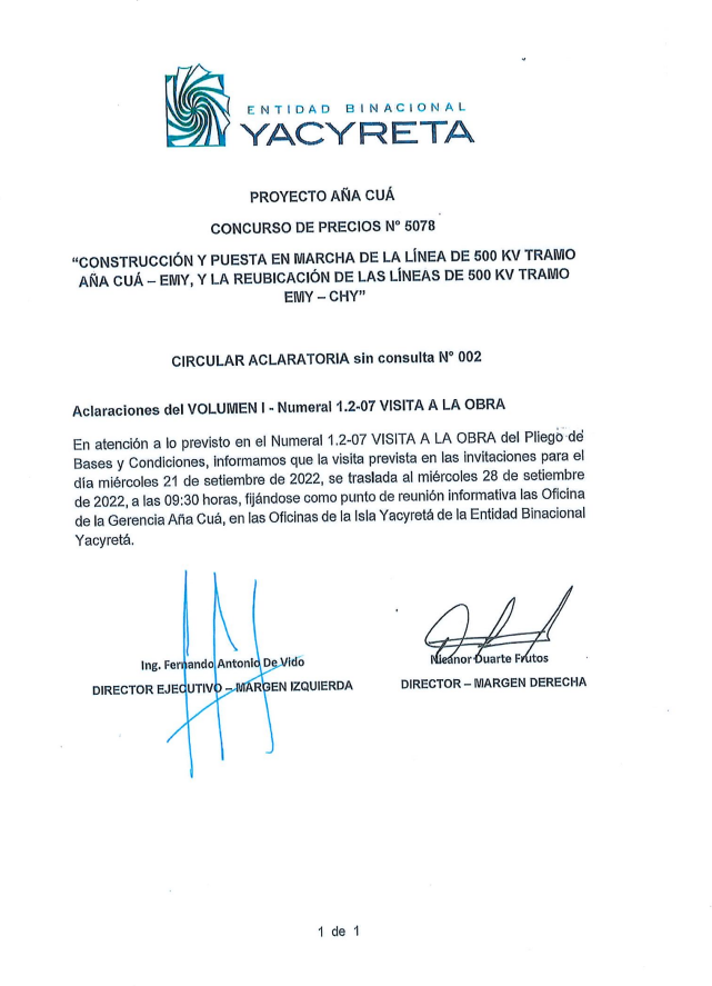 Circular 1 y 2 – Concurso de Precios N° 5078