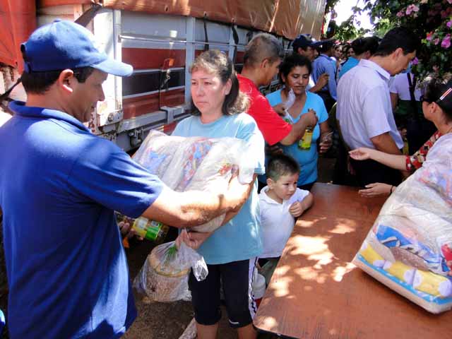La entrega estuvo a cargo de funcionarios de Coordinación Social de la EBY de la Sede Encarnación, con el apoyo del Sector Reasentamiento. El paquete incluye productos no perecederos como harina, yerba, azúcar, leche en polvo, aceite, arroz, fideo, sal, poroto entre otros.