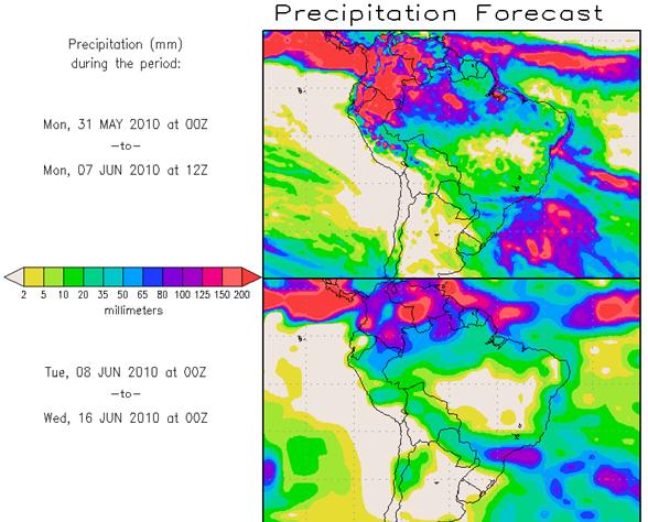 Los pronósticos Hidrometeorológicos extendidos de los Centros Climáticos de referencia indican una tendencia para los próximos 8 días, de leve significancia hidrológica en la cuenca de interés para la CHY.