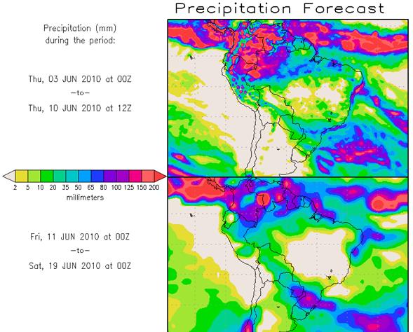 Los pronósticos Hidrometeorológicos extendidos de los Centros Climáticos de referencia indican una tendencia para los próximos 8 días, de leve significancia hidrológica en la cuenca de interés para la CHY.