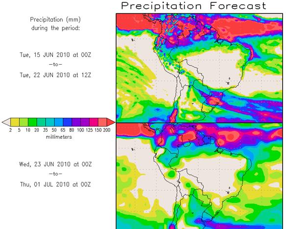 Los pronósticos Hidrometeorológicos extendidos de los Centros Climáticos de referencia indican una tendencia para la semana, de significancia hidrológica en la cuenca de interés para la CHY. (Ver grafico Nro. 1).