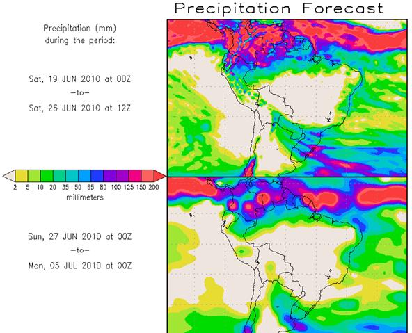 Los pronósticos Hidrometeorológicos extendidos de los Centros Climáticos de referencia indican una tendencia para la semana, de significancia hidrológica en la cuenca de interés para la CHY.