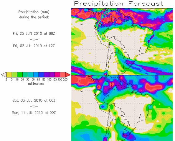Los pronósticos Hidrometeorológicos extendidos de los Centros Climáticos de referencia indican una tendencia para la semana, de poca significancia hidrológica en la cuenca de interés para la CHY.