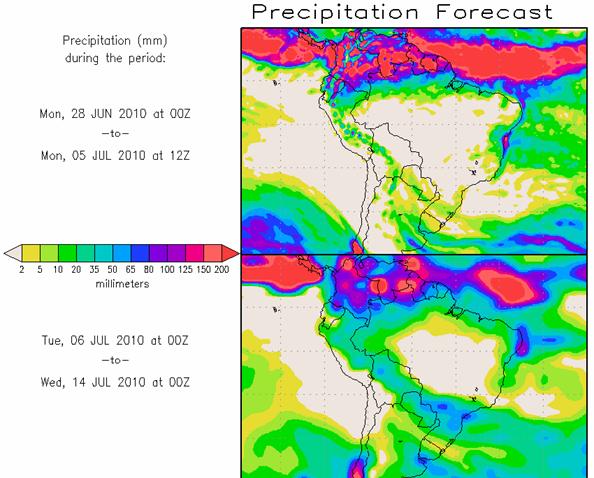 Los pronósticos Hidrometeorológicos extendidos de los Centros Climáticos de referencia indican una tendencia para la semana, de poca significancia hidrológica en la cuenca de interés para la CHY.