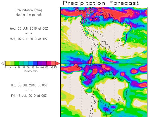 Los pronósticos Hidrometeorológicos extendidos de los Centros Climáticos de referencia indican una tendencia para la semana, de poca significancia hidrológica en la cuenca de interés para la CHY.