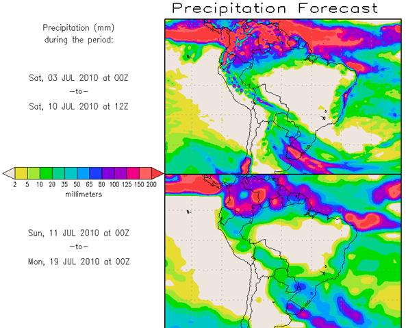 Los pronósticos Hidrometeorológicos extendidos de los Centros Climáticos de referencia indican una tendencia para la semana, de poca significancia hidrológica en la cuenca de interés para la CHY.
