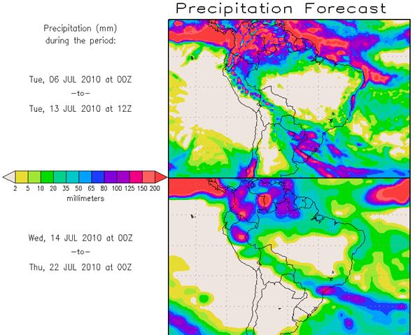 Los pronósticos Hidrometeorológicos extendidos de los Centros Climáticos de referencia indican una tendencia para la semana, de leve significancia hidrológica en la cuenca de interés para la CHY.