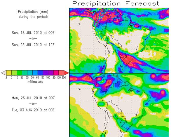 Los pronósticos Hidrometeorológicos extendidos de los Centros Climáticos de referencia indican una tendencia para la semana de significancia hidrológica en la cuenca de interés para la CHY.