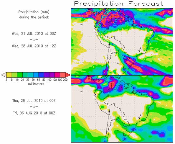 Los pronósticos Hidrometeorológicos extendidos de los Centros Climáticos de referencia indican una tendencia para la semana de significancia hidrológica en la cuenca de interés para la CHY.