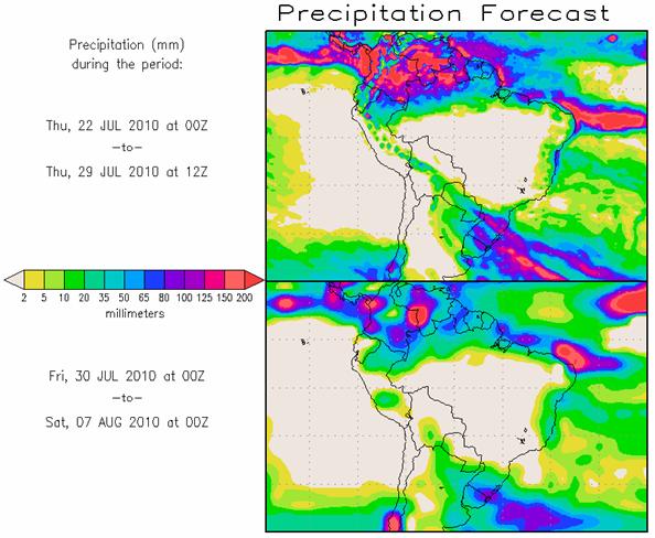 Los pronósticos Hidrometeorológicos extendidos de los Centros Climáticos de referencia indican una tendencia para la semana de significancia hidrológica en la cuenca de interés para la CHY.