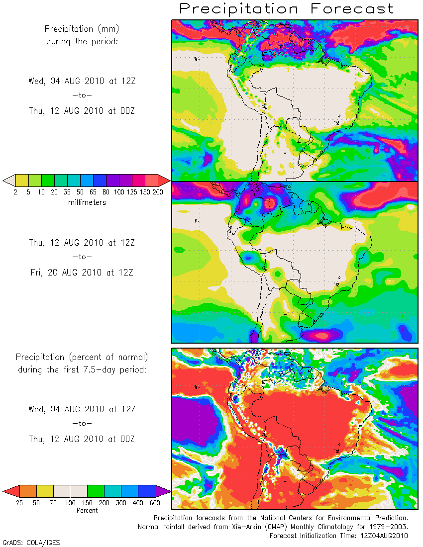 Los pronósticos Hidrometeorológicos extendidos de los Centros Climáticos de referencia indican una tendencia para la semana de poca significancia hidrológica en la cuenca de interés para la CHY.