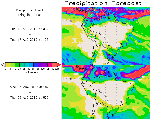 Los pronósticos Hidrometeorológicos extendidos de los Centros Climáticos de referencia indican una tendencia para la semana de poca significancia hidrológica en la cuenca de interés para la CHY.