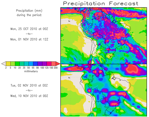 Los pronósticos Hidrometeorológicos extendidos de los Centros Climáticos de referencia indican una tendencia para la semana de significancia hidrológica en la cuenca de interés para la CHY.