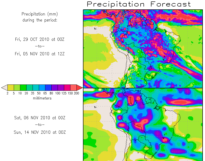 Los pronósticos Hidrometeorológicos extendidos de los Centros Climáticos de referencia indican una tendencia para la semana de significancia hidrológica en la cuenca de interés para la CHY.