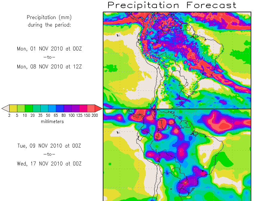 Los pronósticos Hidrometeorológicos extendidos de los Centros Climáticos de referencia indican una tendencia para la semana de poca significancia hidrológica en la cuenca de interés para la CHY.