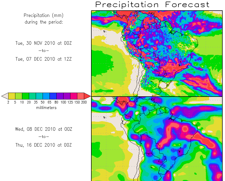 Los pronósticos Hidrometeorológicos extendidos de los Centros Climáticos de referencia indican una tendencia para la semana de significancia hidrológica en la cuenca de interés para la CHY.