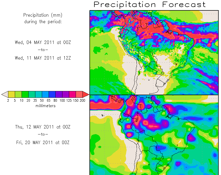 Los pronósticos Hidrometeorológicos extendidos de los Centros Climáticos de referencia indican una tendencia para la semana de poca significancia hidrológica en la cuenca de interés para la CHY. (Ver grafico Nro. 1).