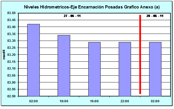 Cota Día 27-06 -11 02:00 hs 83.34 snM Cota Día 28-06-11 02:00hs 83.29 msnM