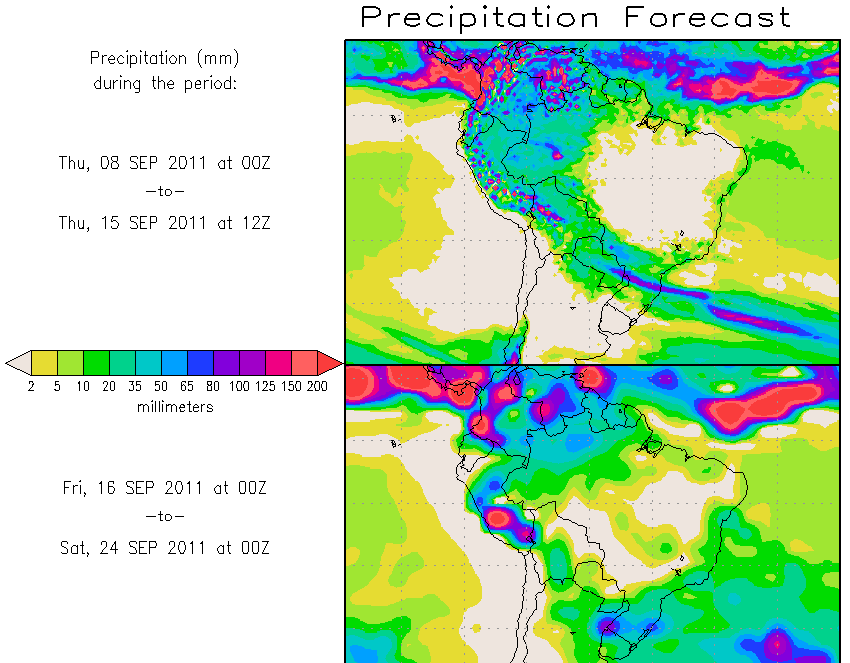 Los pronósticos Hidrometeorológicos extendidos de los Centros Climáticos de referencia indican una tendencia para la semana de poca significancia hidrológica en la cuenca de interés para la CHY. (Ver grafico Nro. 1).