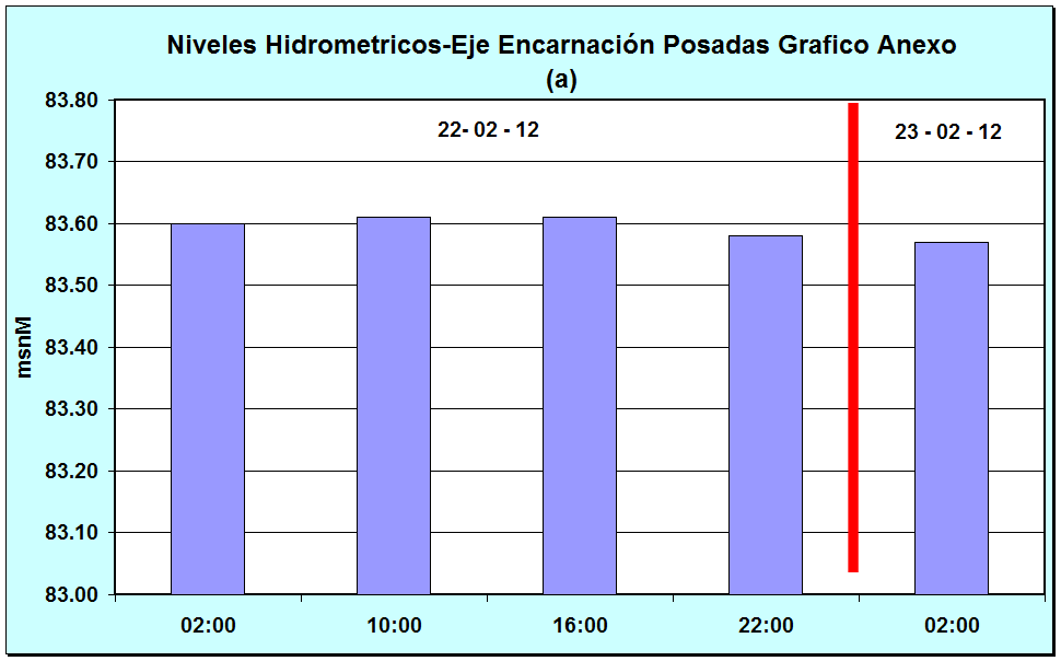 Cota Día 22-01-12 02:00 hs 83.60 msnM Cota Día 23-02-12 02:00hs 83.57 msnM