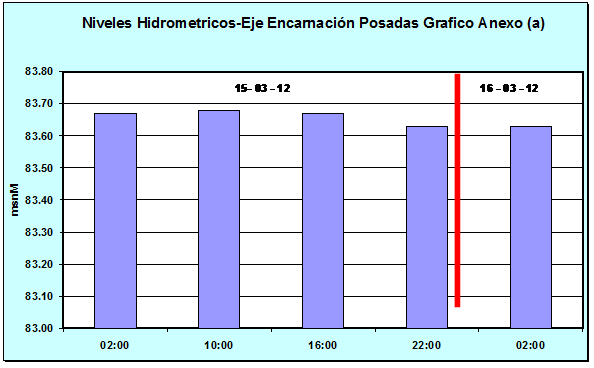 Cota Día 15-03-12 02:00 hs 83.67 msnM Cota Día 16-03-12 02:00hs 83.63 msnM