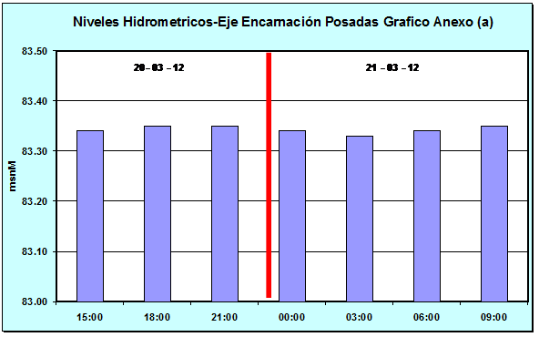 Cota Día 20-03-12 03:00 hs 83.32 msnM Cota Día 21-03-12 03:00hs 83.33 msnM