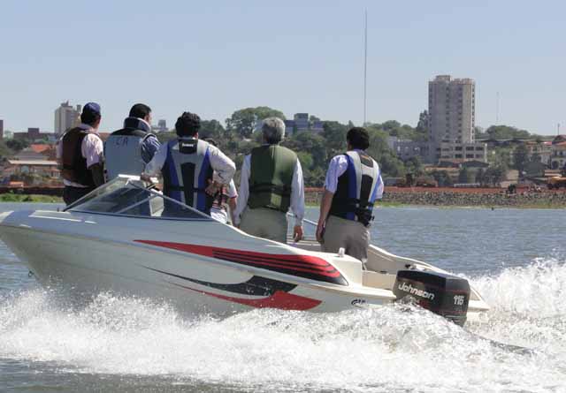 Enrique Sánchez, Jaime Giménez y Roberto Colmán efectuaron un recorrido en lancha para verificar toda la zona ribereña, que también incluyó los resultados de las acciones ambientales y sociales que se ejecutan.