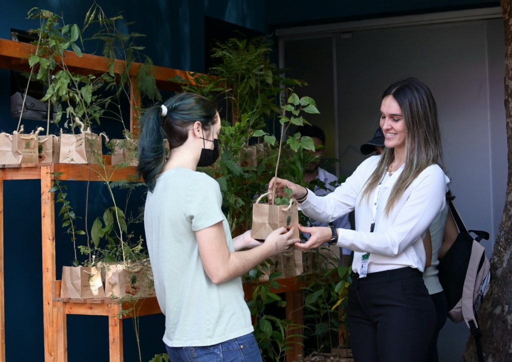 Por un lado, funcionarios del citado sector entregan a los visitantes del stand plantines de especies nativas, las cuales son sembradas en los viveros de la entidad en Ayolas, isla Yacyretá y Asunción, con fines de reforestación.
