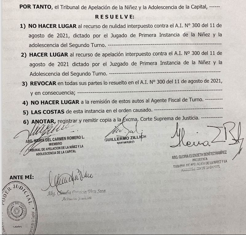 El Tribunal de Apelaciones de la Capital, decidió revocar la resolución de la jueza de la Niñez y la Adolescencia, Alice González De Lorenzi, por la que había decidido remitir a la Fiscalía los antecedentes de una denuncia por supuesto incumplimiento de la Ley de Acceso a la Información Pública, entablada contra la Entidad Binacional Yacyretá (EBY).