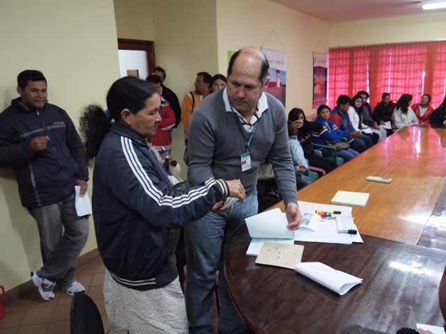 Foto: Una pobladora del Conjunto Habitacional Arroyo Porá recibe el apoyo de la EBY para desarrollar un proyecto productivo.