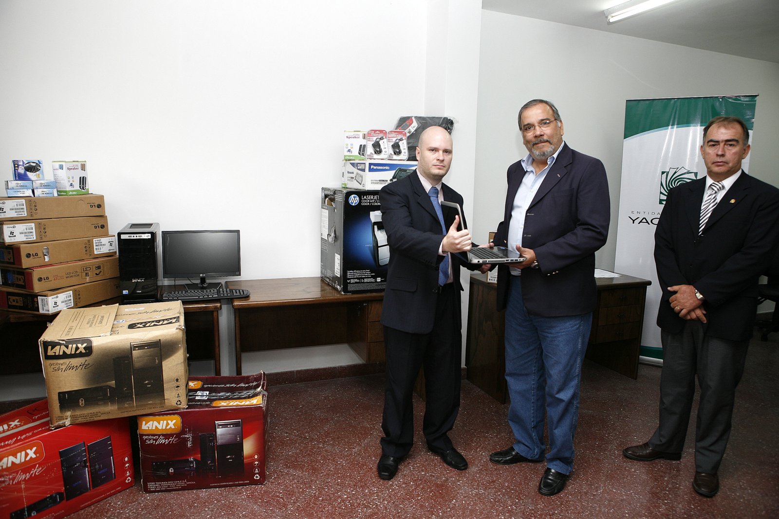El aporte consistió en ocho computadoras de escritorio con sistema operativo Windows 7 Profesional, ocho monitores LCD, dos notebook, un aparato de fax con cortadora de papel térmico y contestadora automática, y una impresora a color. Además de cuatro juegos de escritorio, nueve sillas y tres armarios.