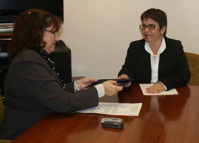 La directora de la Entidad Binacional Yacyretá (EBY), abogada Elba Recalde, hizo entrega hoy lunes de un pasaje aéreo a la intérprete de lenguaje de señas que acompañará a la Miss Paraguay del Silencio 2010 durante su participación del evento Miss Mundo Sordos a realizarse del 2 al 10 de julio del corriente año, en la ciudad de Tbilisi, en el Estado de Georgia (Europa).