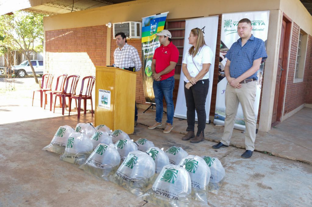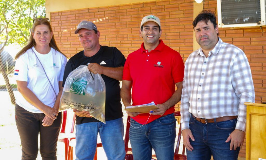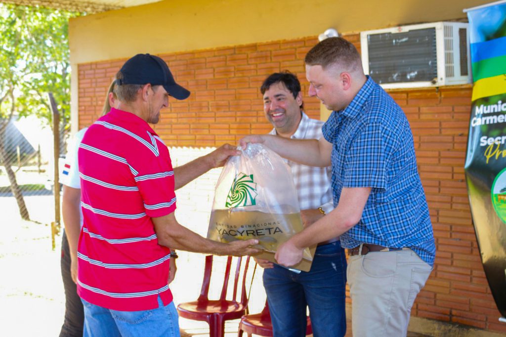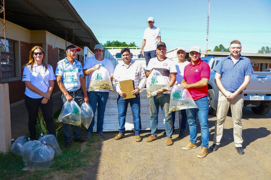 Piscicultores de Carmen del Paraná, Itapúa, fueron beneficiados con la entrega de alevines de Pacú, en el marco del Programa de Fauna Íctica, que lleva adelante la Entidad Binacional Yacyretá, a través del Sector Medio Ambiente.
