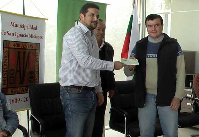 Otro desembolso de 20.000 dólares fue recibido por las autoridades del Club Social y Deportivo San Ignacio Guazú y servirá para la reparación de la pista de deportes de la institución.