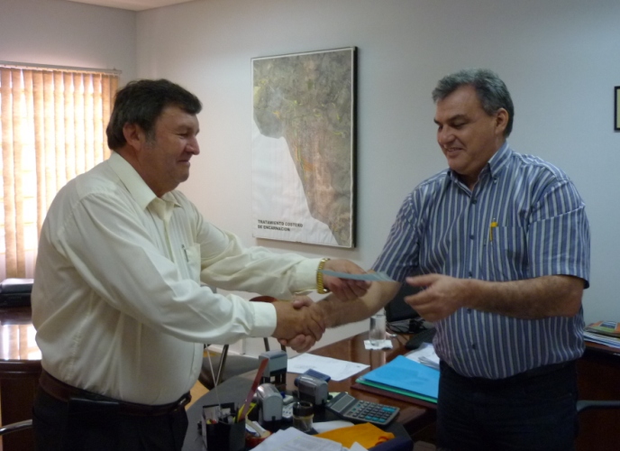 El acto de entrega se llevó a cabo en las oficinas de la binacional, en el barrio Buena Vista y estuvo a cargo del secretario del Comité Ejecutivo, Horacio Carísimo y Gladys Pereira, delegada de Coordinación Social, sede Encarnación.