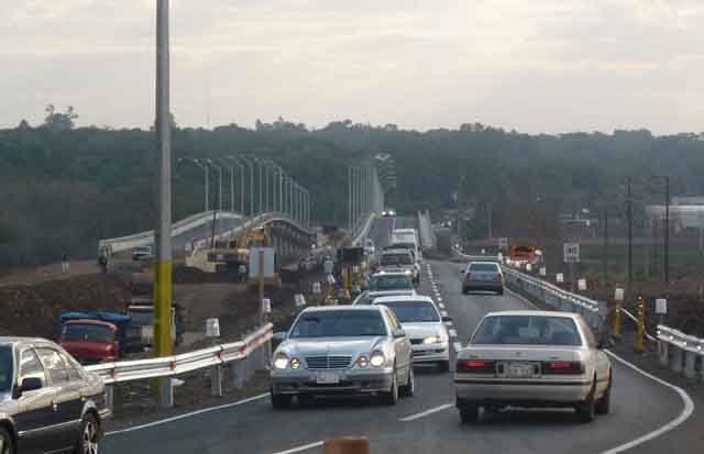 Según el informe técnico, en dos semanas más también se habilitará el puente paralelo, hecho que significará el descongestionamiento de esta importante vía de acceso a la ciudad y para la Binacional el avance de una de las obras necesarias para el recrecimiento de la cota de embalse a 81,50 metros sobre el nivel del mar.