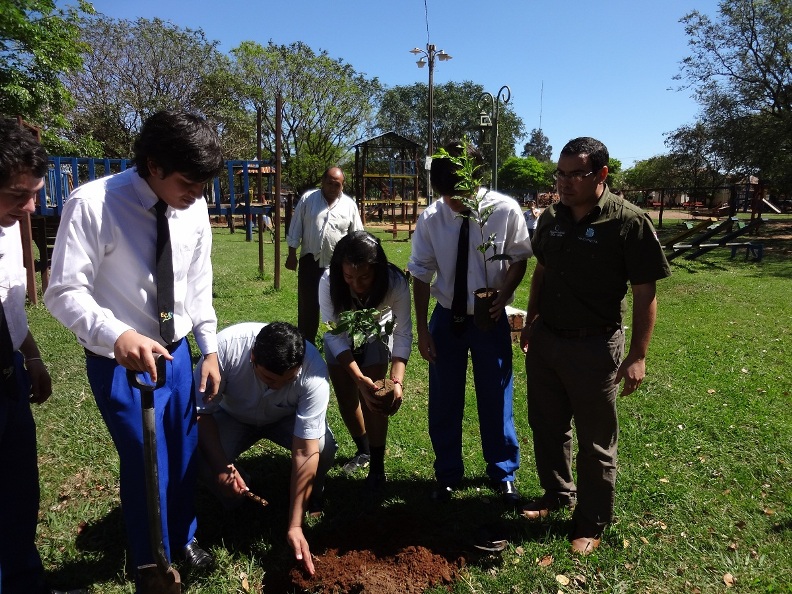 La entrega se realizó en la institución educativa y los primeros ejemplares fueron plantados en la plaza Boquerón de la capital departamental ante la presencia del intendente local, Juan Carlos Meza; la directora del Eco Colegio, Selva Quintana; alumnos y el responsable del área de Educación Ambiental de Yacyretá, Andrés María Riveros.