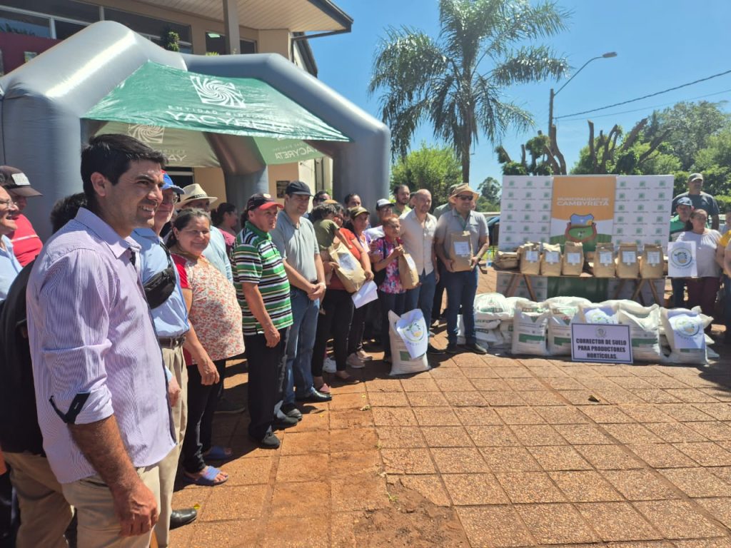 Ayer 27 de noviembre, fueron entregados correctores de suelos y semillas de rubros de consumo en Cambyretá y Carmen del Paraná, alcanzando a 600 familias en total.