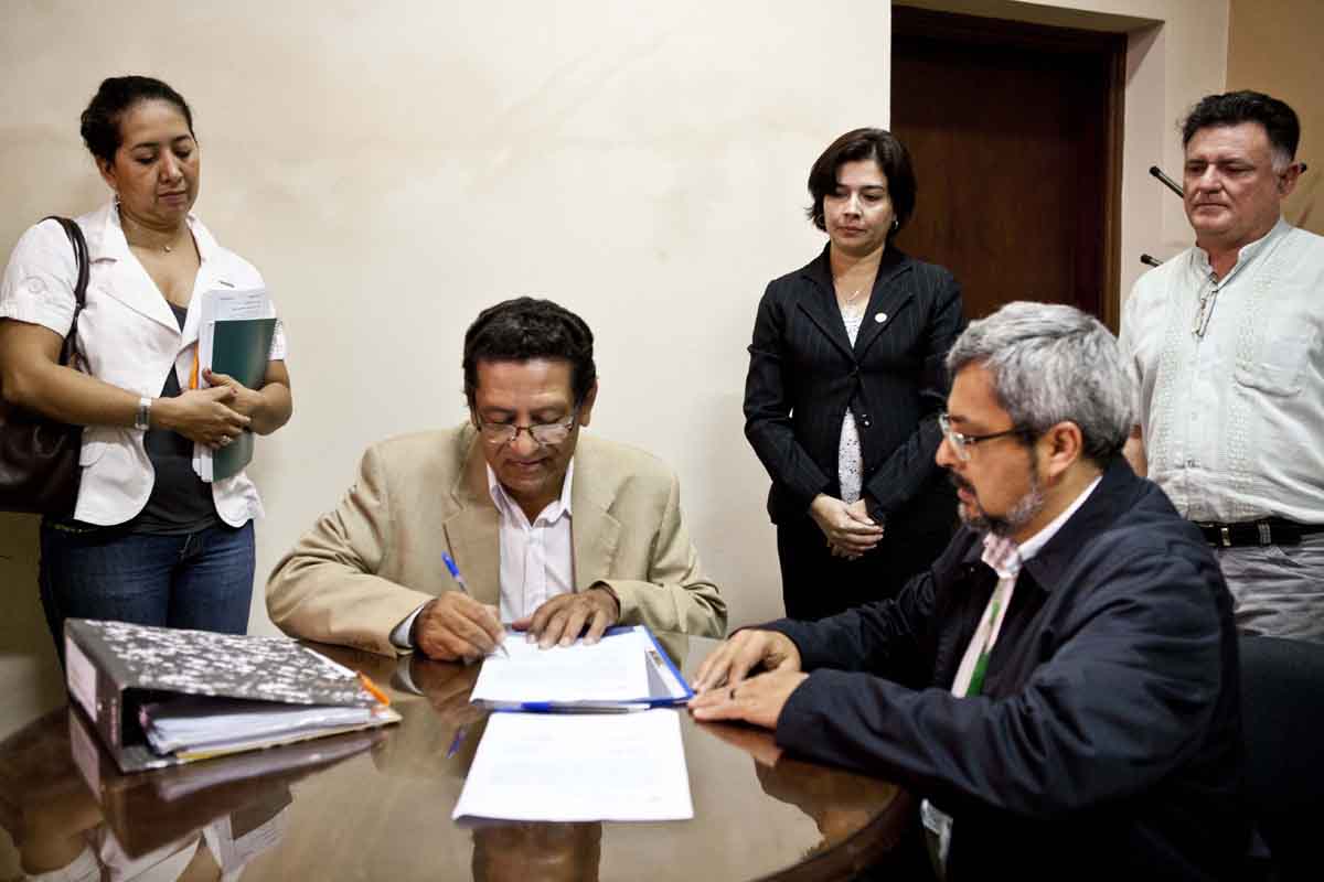 La firma del acta de acuerdo se inició en la oficina de Coordinación Social de Yacyretá con la presencia del representante de la firma adjudicada, y fiscalizadores de la obra por parte de la EBY.