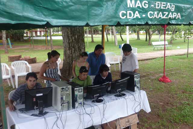 La jornada que proseguirá este domingo, a partir de las 9, cuenta con el apoyo de la Gobernación de Caazapá y la municipalidad local. Para acompañar y guiar en la utilización de los equipos informáticos funcionarios de la EBY estan prestando sus servicios en dicha ocasión.