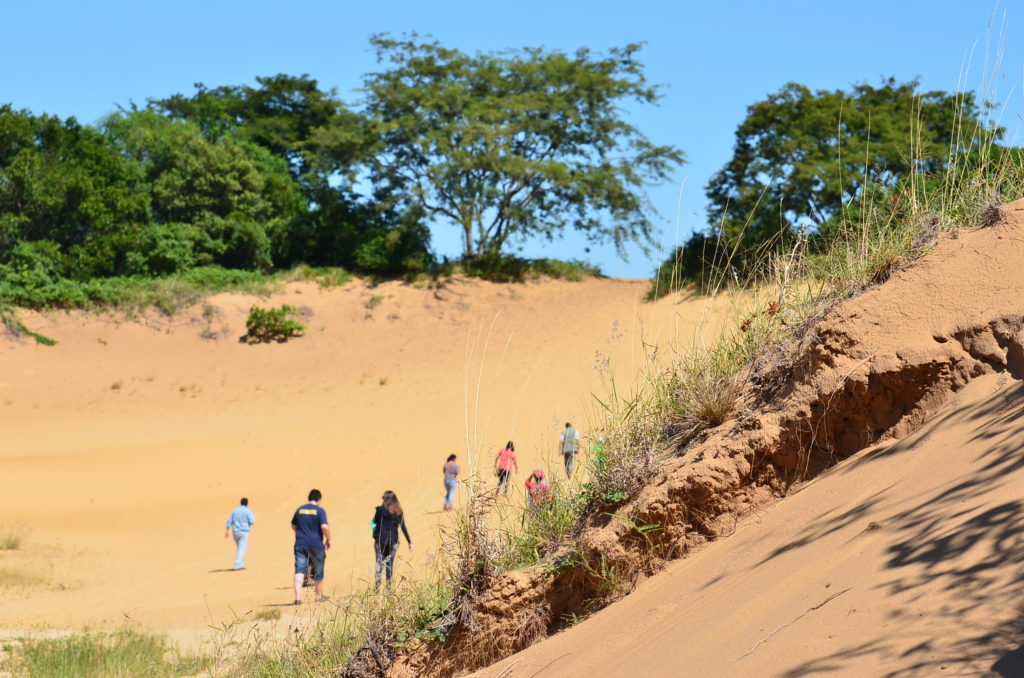 Dunas Vegetadas: Son cordones arenosos que se forman por la acción de los vientos, que pueden llegar a alcanzar alturas considerables. La vegetación en general es rala o baja principalmente como el espartillo. En las franjas de dunas están en contacto con zonas boscosas, aparecen especies con más requerimientos de humedad como el Arary e Yvahai.