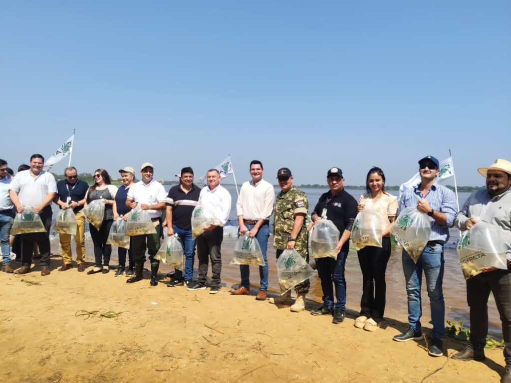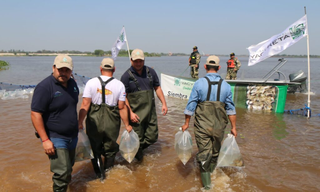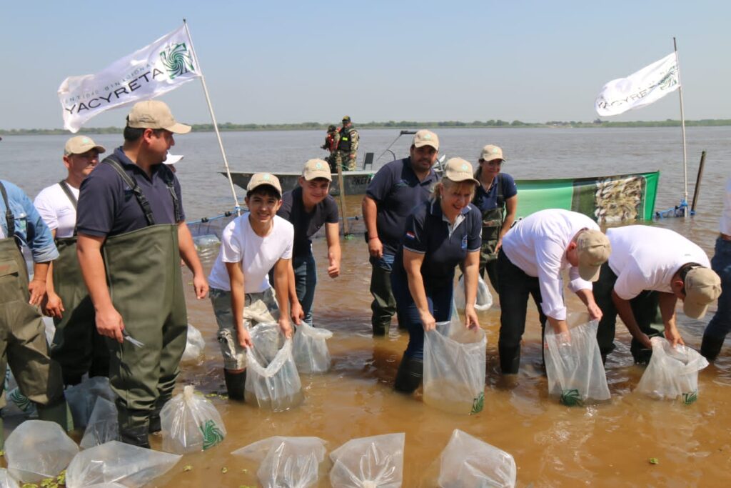 Técnicos del Área de Medio Ambiente de la Entidad Binacional Yacyretá (EBY) procedieron a la siembra de juveniles de pacú en el río Paraguay. De la actividad participaron autoridades departamentales, locales, docentes y alumnos de la Facultad de Ciencias Agropecuarias y Desarrollo Rural de la Universidad Nacional de Pilar (UNP).